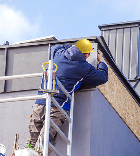 屋根の頂上にある棟板金などの板金工事を行っております。